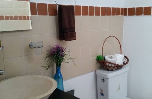 This spacious home is perfect for short or long visits. 3 bedrooms make it great for friends or family, with a newly-remodelled kitchen perfect for home-cooked meals. The townhouse opens onto a common garden and pool, where you can enjoy an evening cocktail as the sun sets over Tulum.