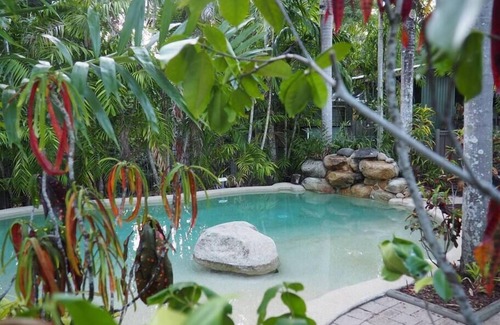 this fully self contained cottage is across the road from the beach and is set amongst tropical rainforest gardens
