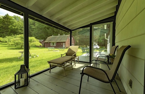 Newly renovated! This upper Delaware River mountain retreat sleeps 10 with pull out sofa bed. Antiques throughout the home. Brand new living/dining room furniture and four TV's. Electric fireplace. Kitchen has quartz countertops, Keurig and new appliances. Situated on secluded 20 acres with apple orchard and small pond. Quiet and remote. Fire pit, gas grill and ping pong table. Screened in porch. One mile from Delaware River and canoe rentals. Close to weekend Farmer's Market, breweries, wineries. 25 minutes to Bethel Woods Center for the Arts. Legoland Park on the way from NYC area. Family friendly. Nearby skiing, hiking. Pets allowed..