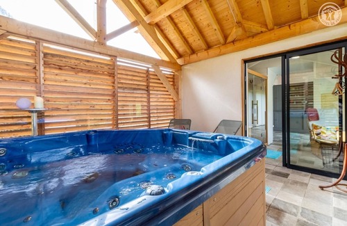 Individual chalet on the owners' property. Private parking next to the chalet. Access by an external staircase (4 steps). Living room-kitchen area with wood stove and reversible air conditioning, sleeping area (separated by a piece of furniture from the wellness area, no partition - 1 double bed 160x190 cm) and wellness area with hammam and 2-seater sauna. Semi-enclosed outdoor area with 6-seater spa (17 m2), private wooden terrace and large shared garden. At the foot of the Beauvoir, in the Chartreuse massif, discover this intimate and peaceful address where you can stay and enjoy its wellness facilities: spa, hammam and sauna. The beautiful south-facing wooden terrace is equipped with a hammock, the spa area opens or closes to admire the landscape as you wish. Very comfortable, pretty garden..