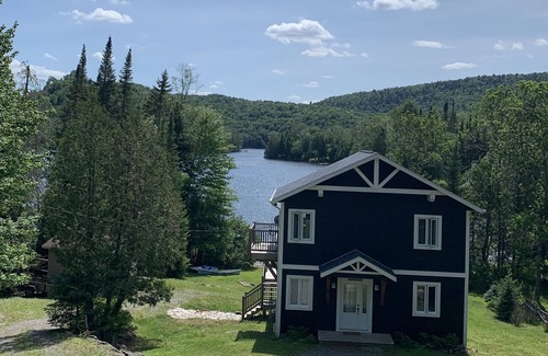chalet bleu is a beautiful waterfront cottage which is nestled in on lac brochet , the extension of lac labelle ,35 minutes from mont tremblant The cottage includes a cozy comfortable ambiance with a flat landscape and a spectacular view.