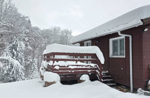 relax in the garden (enjoy the outdoor furniture!) or sip a drink on the deck or patio of this 323-sq-ft chalet