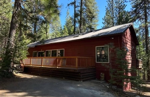 large 5br/3ba family cabin in peaceful strawberry 🌲 Sleeps groups comfortably with two living areas, game room with pool & poker, and outdoor deck for relaxing. Just 4.2 miles to Pinecrest Lake 🚤 and 6.4 miles to Dodge Ridge ⛷️. Pet-friendly 🐾 with approval. Perfect for year-round mountain getaways.
