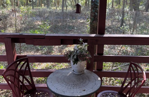 Escape to this lovely cottage in picturesque Dunnellon. This cozy retreat features 1 bedroom with a memory foam queen bed, a charming living room with a futon, and a bathroom stocked with a hair dryer. Guests can also enjoy amenities like a fitness room, trails in backyard, iron, heating, and AC. Horses and trailers welcome. RVs as well. We hope you enjoy what our place and Dunnellon has to offer. Close to fresh springs for kayaking and tubing. Close to downtown Ocala..