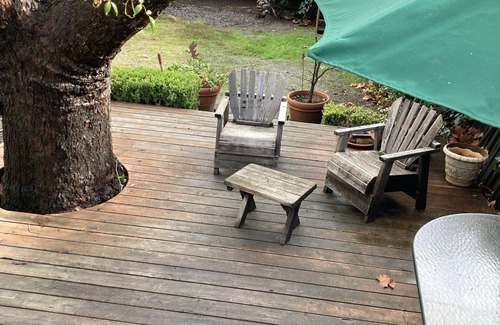 In the heart of Napa Valley and just a block off Main St this small home has two bedrooms upstairs with a queen bed and a twin. The small new bathroom has white tiled walk-in shower. A small kitchen and dining area open onto a large enclosed porch filled with windows and light. A basement area has one bedroom (queen), a shower, bathroom and laundry area. A large deck under a huge tree invites one to enjoy warm October afternoons. Walk to several wineries, art galleries, a theater and great restaurants..