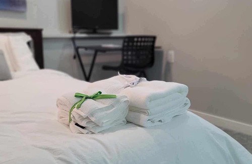 Welcome to our elegant 2-bedroom garden-level suite — the perfect blend of comfort and convenience. Located on the ground floor with a private entrance, this bright and cozy space features a fully equipped kitchenette, dining area, washer & dryer, and a modern bathroom.