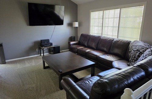 Make yourself at home in this fantastic 3-bedroom Bellevue retreat. With 1 king bed and 2 queen beds, this superb house offers a cozy living room with 2 bunk beds for extra sleeping space. Enjoy the convenience of amenities like heating, AC, WiFi, and a washing machine. The 2 bathrooms feature a bathtub and shower, along with a hairdryer for your use. We'll be available to answer any questions while you stay at our place..
