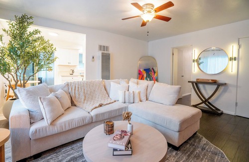 Centrally located in Palmdale, this charming home is the perfect blend of comfort and convenience. With 4 cozy bedrooms, each featuring a queen bed, and 2 bathrooms with hairdryers and refreshing showers, you'll have everything needed for a relaxing stay. Enjoy a fully equipped kitchen, an in-home washer/dryer, and a welcoming atmosphere. Just 5 minutes from the Antelope Valley Mall, Palmdale Regional Medical Center, and close to popular restaurants and shops, you’ll have easy access to everything. We’re pet-friendly, so feel free to bring your furry friends!.