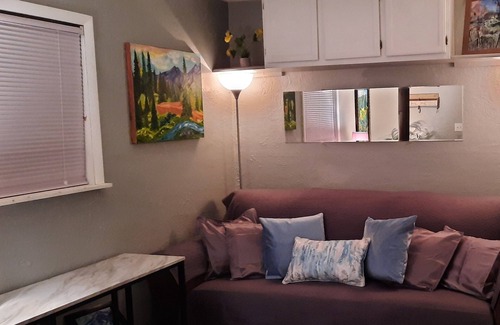 nestled under bears ears view as you turn in the driveway and also a clear view of blue mountain from the kitchen window, this charming little cottage, in a country setting has a full kitchen (large fridge and full-size oven) with brand new, modern decor It is a cozy home filled with lots of original Southwest Art. It is so quiet you can hear the flap of the birds’ wings and see stars forever. (There is no clanging/banging of a hotel, plus TV thru the wall & inconsiderate neighbors.) There is outside seating and a hammock. Bring swim gear for a wonderful, local pool and the local lake is only 10 minutes away. Perfect for 2 or 4, but could squeeze in 7... There are AMAZING tourist sites only one and a half hours away in each direction, with Lake Powell being to the west, Monument Valley 1.5 to the south, Moab and Arches 1.5 to the north and Mesa Verde 1.5 to the east. The local visitor's center usually opens at 10 a.m. and guests have given glowing reports of how helpful they are.
