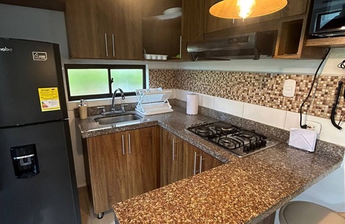 welcome to your dream vacation spot! nestled in the heart of quindío, our beautifully designed apartment is tailored for ultimate relaxation and family fun Enjoy the comforts of home with our fully equipped kitchen, spacious terrace with a private barbecue, two full bathrooms, and a private laundry area.