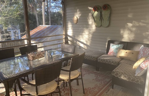 whether you are with your family or a group of friends, this is the perfect vacation home in isle of palms - in addition to all the amenities inside, you can enjoy the private, quiet back porch that also serves as a dining and outdoor living area as well as the expansive carport area under the house