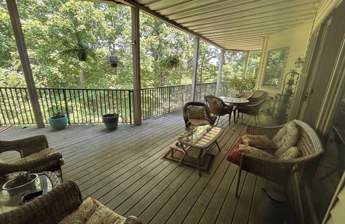 Welcome to this private suite on the bottom floor of a family home in Tellico Village. You have the whole lower space with a private entrance, deck, and 2 cozy bedrooms with a king and queen bed, a lovely private bathroom, and a comfortable living room with a sofa bed. NO Full Kitchen, but a small fridge, barbecue, sink, microwave, toaster oven, and Coffee maker. For a small extra fee, guests can enjoy amenities like an indoor and an outdoor pool, golf, gym, pickleball, tennis at the Wellness Centers, as well as the lake during their stay. Enjoy all that Tellico Village has to offer when you stay at our place..