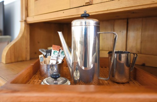 step back in time at this hidden garden cottage, thoughtfully decorated with high-end vintage furnishings that capture the elegance of the 1800s The open, airy layout features a cozy living area, dining nook for two, and a luxurious king-sized bed, all designed to create a warm, inviting atmosphere. The fully equipped, renovated kitchen offers modern convenience without sacrificing old-world charm. Ample closet space ensures a clutter-free stay, perfect for extended getaways.