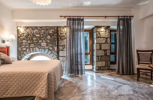 Wake up to unforgettable sunrises and fall asleep to the soothing sound of waves crashing on the shore. Relax at this beachfront neoclassical building with beautiful inner stone walls, renovated in 2017. Spend the day at the beach, explore the island's capital and have a delicious seafood dinner at sunset at the restaurant nearby.