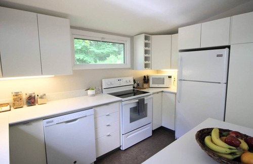 Nestled in a peaceful wooded setting, our contemporary 1 bedroom cottage invites you to relax, surrounded by nature and hiking trails. Only five minutes to Cornell and ten minutes to downtown Ithaca.