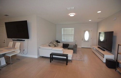 This house is close to everything. Halfway between the beach and the major theme parks, this house allows you visit both easily. 30 Miles to Orlando, 30 Miles to Daytona Beach. 45 mins to Universal and Sea World, 45 mins to Disney. 25 mins to Daytona International Speedway, and New Smyrna Beach. Located in Deltona, Florida 3 mins from I-4 and exit 111. During downtime sit and enjoy the 86" tvs..