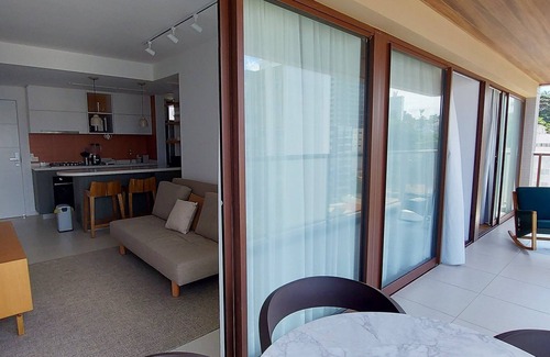 Beautiful 2 bedroom apartment with large sea view balcony, located in a new condominium in Barra! Close to the Barra shopping mall and the Barra-Ondina Carnival circuit! With smart TV in the living room and bedroom, WI-FI, split air conditioning, full kitchen. Penthouse with swimming pool and gym. It has a garage and 24-hour reception.