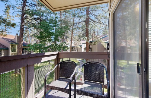 overlooking the wooded property, your two-bedroom with loft townhome boasts vaulted ceilings, a gas fireplace, a spiral staircase, and a modern, open layout The full kitchen is well-equipped for prepping your favorite recipes, and there’s plenty of space to gather for mealtime, board games, and puzzles between the living and dining areas. Step out on the shaded balcony for a breath of fresh mountain air anytime.