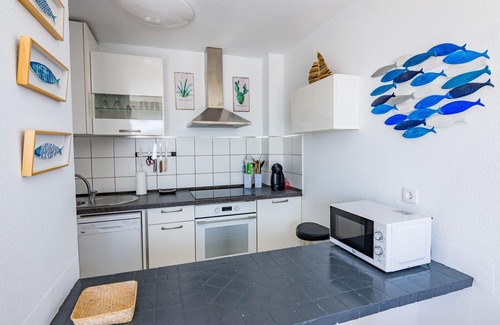the apartment consists of two bedrooms, a bathroom, living room and kitchen The kitchen has a fridge, ceramic hob, oven, microwave and dishwasher. It also has a small patio with washing machine. It has a very nice balcony overlooking the sea and the town of Morro Jable. The apartment has been recently redecorated with great taste and the kitchen has been renovated to include a larger ceramic hob, dishwasher and a new sink.