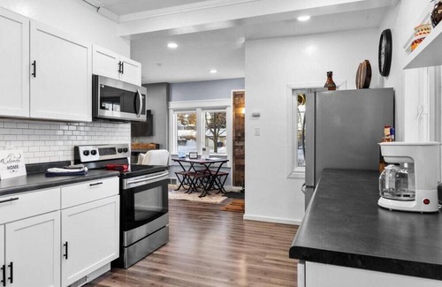 the home renovation project provides modern bathrooms and kitchen 2 bedrooms and a full size shared bathroom on main floor. An open concept design creates a roomy sitting and dining area adjoining the contemporary kitchen. Lower level boasts one bedroom with ensuite bathroom. Lower level also has a media room and laundry facilities. The tv's are Netflix enabled. New central air conditioning keeps you comfortable and cool..