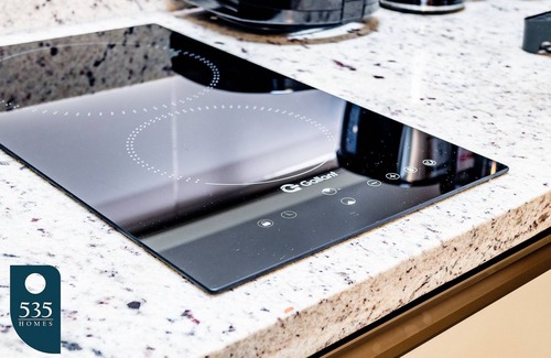 the kitchen is modern and fully functional, featuring a 2-burner induction cooktop, electric coffee maker, italian coffee maker, microwave, refrigerator, sandwich maker, water purifier, blender, and even wine glasses for special moments You'll also find a drying rack, clothespins, and a bucket—perfect for longer stays.