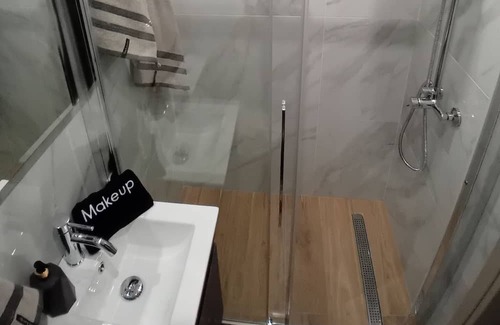 a stone staircase leads you to the first floor of the house The property was built in 2024 and has modern inside decoration and beautiful stonework outside. The house is spacious (100 sq m inside), comfortable, and fully equipped. The windows have nets, so guests don’t have to worry about mosquitoes. By opening the windows, a lovely sea breeze is felt throughout the rooms. The house has a relaxing atmosphere; it’s peaceful and bright.