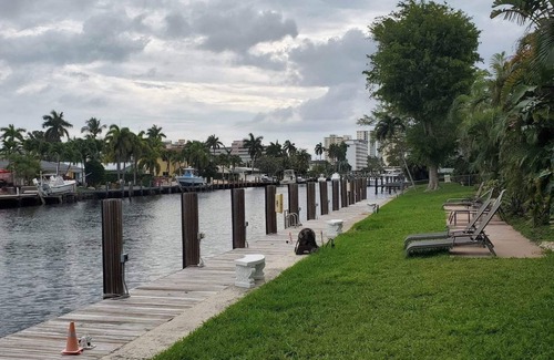 Welcome to your home away from home in Pompano Beach! A quiet secure two story 16 unit condo property with a full time property manager on-site. This fully equipped ground floor condo is just a short 10 minute walk from the beautiful Pompano Beach, and is surrounded by an array of fantastic restaurants, bars, coffee shops and shops. Need groceries? No problem! The Publix grocery store is located right next door. Inside, you'll find a tastefully decorated condo with two bedrooms featuring a King bed and two Singles (which can be put together for a queen), two full bathrooms, a full kitchen, a comfortable living room and two large flat screen TVs.. Additional amenities include quality linens, towels, beach towels, a beach wagon, beach umbrella, 2 hair dryers, iron, ironing board, high speed internet, Wi-Fi, and a quiet central AC and heating system. Take a dip in the heated pool or relax on the deck and grill up some dinner. You'll also have access to a reserved parking space for one car (with extra paid parking available across the street), as well as a full laundry facility on site. The location of this condo is truly unbeatable. The beach front offers Pier fishing, a beautiful sandy beach, splash pad, playground for kids and several waterfront restaurants. Nearby you can find a diving center, fishing pier, gyms, boat rentals, tennis, pickle ball, golf, Fort Lauderdale Water Taxi and shopping. Bring your bike or rent a bike and ride up and down the coast or ride the off road 4.4 mile loop around Pompano Airpark. With or without car this condo is surrounded by all the conveniences for a fun and memorable vacation!.
