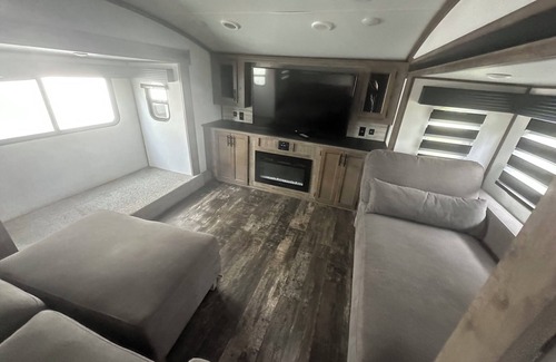 Stay comfortably in Milton at this delightful 1-bedroom recreational vehicle. The cozy space features a queen bed, 1.5 bathrooms with shower, AC, and heating. Enjoy a quaint and awesome stay in this unique accommodation on a working horse farm. Feel free to reach out to us during your stay - we're happy to suggest local spots to check out..