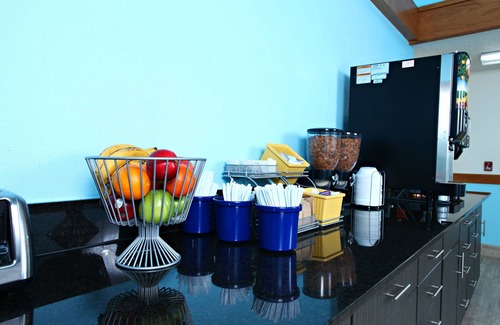 each simply furnished guest room at coratel inn & suites by jasper newton has a microwave and refrigerator and free wi-fi Cable TV and free local calling are also available. Waffles, pancakes and fruit are part of the continental breakfast served every morning at this pet-friendly Newton motel.
