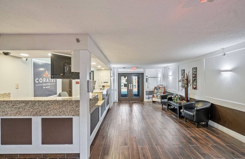 Coratel plus features are 24-hour fitness center, coffee/tea in a common area. Continental breakfast is provided, free Wi Fi in public areas, free self parking. Wichita Dwight D. Eisenhower (ICT) Airport is 1.1 miles from the hotel. Additionally, a business center, conference space and dry cleaning are onsite. All rooms provide conveniences like dining areas and sitting areas, plus free Wi Fi and LCD TVs with cable channels. Guests will also find refrigerators, microwaves and coffee makers. The conference room can accommodate up to 50 guests. The minimum booking duration is 4 hours at a rate of $100. If additional time is needed, an extra charge of $25 per hour will apply. The conference room is available for use from 9:00 AM to 10:00 PM only. This property has a smoke-free environment. Minimum check-in age is 21.