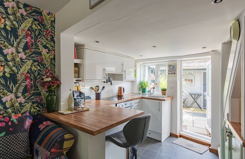 Located in the charming conservation area of Deal, Cow and Cockle Cottage offers a cosy and quirky seaside haven. A stones throw from the buzzing artisan high street with its delis, cafes, boutique shops and lively bars. The promenade and beach are just a stroll away. The property has been lovingly restored to offer a mixture of old and new, with a fabulous courtyard garden with its own bar. A king size bedroom and cosy log burner in the sitting room makes Cow and Cockle Cottage the perfect holiday home all year round. Perfect for couples.