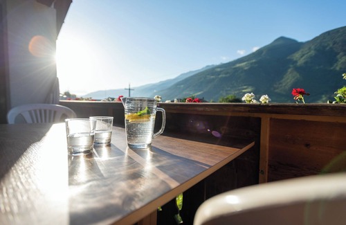 The cosy holiday apartment on the Bioland certified farm in the village of Castelbello-Tschars impresses with its view of the mountains of South Tyrol and is located in the middle of the Vinschgau Valley, surrounded by orchards and nature. The apartment has a living room, a well-equipped kitchen, 2 bedrooms (one with a queen-size bed and a loft bed for 2 people) and a bathroom, making it suitable for 6 people. The apartment is equipped with WLAN, cable and satellite TV. A cot and a high chair are also available. Start your morning with a cup of coffee and the beautiful view of the mountains. The large garden with a wooden garden house, deckchairs, a table, a bench and a barbecue is shared with the other guests of the farm. The nearest restaurant is only a few minutes walk or 1 minute by car. Some supermarkets, as well as other restaurants and cafés can be reached within 3 minutes by car in the centre of the village. If you arrive without a car, you can walk from the accommodation to the nearby bus stop (2min) or to the train station (20min). Bicycles can also be rented for excursions. On your arrival you will receive the "Vinschgau Card", with which you can use public transport free of charge and get discounts for many leisure activities. You will also receive free admission to the "Erlebnisbad Naturns" including sauna.