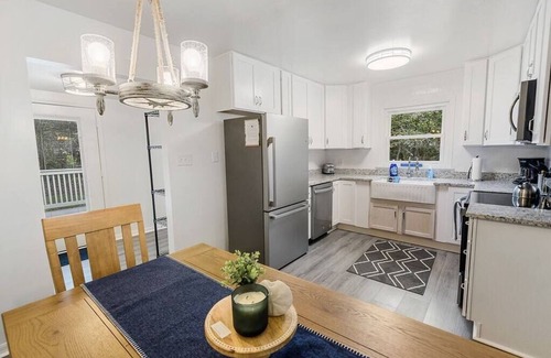 completely renovated in 2022, this island cottage was thoughtfully redesigned with stylish finishes that reflect the natural beauty of dauphin island Upgraded with stainless steel appliances, granite countertops, and a fully stocked kitchen, the home also features inviting front and back porches and a bright, airy bathroom with a custom bathtub and shower.