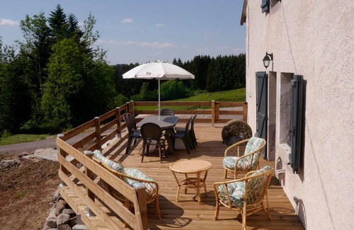 A haven of peace for nature lovers: discover the many hiking, walking, mountain biking and cycling trails in the heart of the Vosges Saônoises and on the plateau of 1000 ponds. Close to the spa towns of Luxeuil (25 km), Plombières, Bains Les Bains. Gîte la Chapelle in the heart of nature - In the heart of the Vosges Saônoises, in a preserved and isolated environment, discover the gîte La Chapelle: this typical farmhouse, tastefully restored with respect for stone and wood, opens its doors to you for an excellent stay. Magnificent view of the wooded landscapes, small fountain. Independent and isolated gîte. On the ground floor: entrance, through the old charri, living room with pellet stove, equipped kitchen, 1 bedroom (1 double bed), a bathroom with walk-in shower, separate WC. Upstairs: mezzanine living room with flat-screen TV, 1 bedroom (1 double bed), 1 bedroom (2 single beds). 1 shower room and toilet. Laundry room (washing machine, dryer). Equipment room: children's games, table football, storage space for bicycles, motorcycles, and strollers. Heating: pellet stove if used (consumption at the tenant's expense, [hidden] €7 per 15kg bag, price depending on availability) and electric heaters. Wooden terrace (enclosed). Lawned garden, swing set, pétanque court.