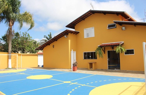 The house has ample space to enjoy the family and friends, possessing a pool with glass structure that provides a unique experience to enjoy it, sports court such as football, shuttle, volleyball and barbecue. In addition to this space for fun, the house also has complete infrastructure to host up to 30 people, with 5 bedrooms, 3 bathrooms, TV room and kitchen. The entire structure of the house is a single location, to have the tranquility of the neighborhood, close to necessary services, and the location near the city center and asphalt streets structure..