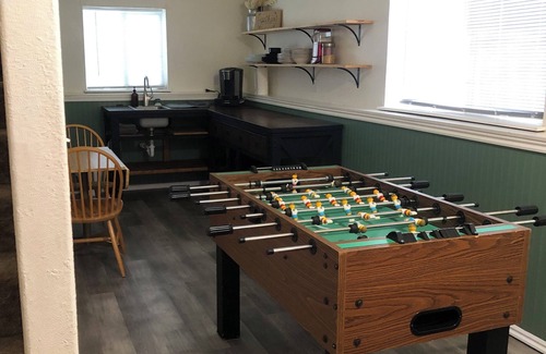 Your Pocatello adventure begins at this 4-bedroom house. Inside, guests will find 1 king bed, 2 queen beds, 2 bunk beds, 1 full bed and 1 twin bed. The property also features a cozy living room full kitchen and a basement kitchenette. With amenities like a fuse ball table, washing & dryer machine, WiFi, and AC, this lovely retreat is perfect for families or groups. We're happy to assist with any questions while you stay at our house..