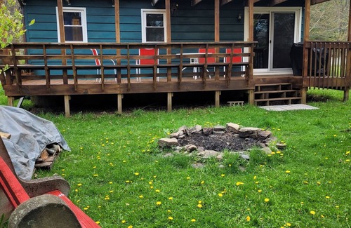 Our pet friendly cabin features beautiful interior channel pine siding, vinyl flooring, rustic log accents and tin kitchen back-splash. That just names a few of the highlights that add to a Black Bear theme we have created. Castle patio doors lead to a large deck running the length of the building and overlook a frog pond. The area is frequented with Black Bear visits, hence it's name. The location is in the heart of 23,000 acres of Delaware State Forest and is Adjacent to Promised Land State Park offering, Swimming, Hiking, Mountain Biking, Hunting, Snowmobiling, all from your front door, the list goes on!.
