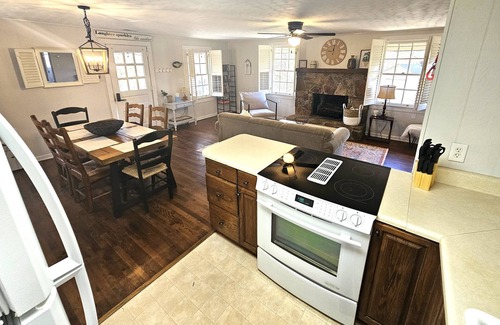 coffee is on us! coffee bar available for just one cup with the use of k-cups or make a pot for everyone Full size kitchen with all the small appliances, pots and pans, enough dishes for everyone to make that fancy dinner or popping a pizza in the oven. Working propane grill for those gorgeous summer months.