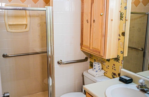 this cozy cottage is nestled in the woods and has an amazing view from the back deck Home is wheelchair accessible and even has a roll in shower. Downstairs you have 1 queen bed and 1 King bed and 2 bathrooms. Upstairs in the open loft you will have 2 twin beds..
