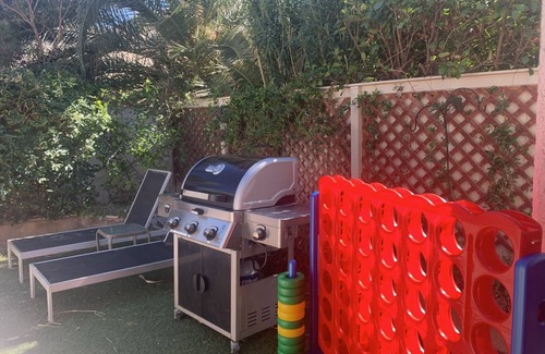 Unwind in a comfortable home with open floor plan indoors and entertaining spaces outdoors! It is fully equipped to gather with friends and family with a pool, BBQ, giant connect four game, patio table, and long dining table. convenient access to grocery stores, restaurants, bars only 1 mile away! south point casino is 2 miles away and las vegas strip is 6 miles away so it’s close to everything!