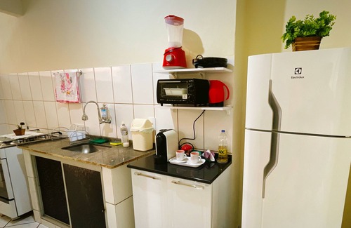 Apartment with full kitchen including stove and oven, refrigerator with freezer, electric oven, and coffee maker. Two bedrooms with two double beds can accommodate up to 4 guests. Close to a pharmacy, butcher, greengrocer, bakery, market, gym, and sports courts, all within 22 meters distance. Located 600m from Shopping Sul and 4 minutes from the bus station and 8 minutes from the center of Cachoeiro de Itapemirim..