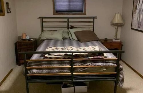 Cozy lake home only 60 miles from the Twin Cities great for a short get away or a longer vacation. Bring your boat and take advantage of the beautiful Goose Lake great for fishing and also connected to Lake Rabor and Mandel. Also great fun to get away during the winter. We also have a 36 ft.2019 Zinger trailer that has a front bed room and a back bunk room with 4 single beds available for separate rental..