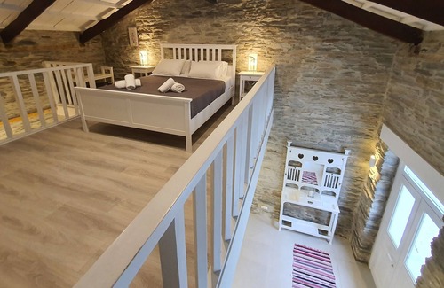 this place is also located in chora only 20 m from the main beach nimporio It’s also only 50 m from the restaurants, 10 m from the baker and the supermarkets. Only 200 m from the center of Andros town where and the walking street. It has size 50 square meters. Loft is made from stone wood and metal and gives a wonderful and friendly feeling.