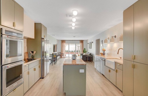 Stay in a designer's private single story home with state of the art finishes blended with timeless elegance, a spacious pool, and great privacy in a lovely neighborhood. Spacious floor plan with two separate living rooms, four high definition TVs, high speed wifi, indoor and outdoor dining areas, and fully stocked custom chef's kitchen with butcher block countertops and stainless steel appliances. Sleep comfortably with Tuft & Needle mattresses on the beds and just 10 min from the strip..