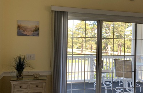 Golf package available upon request! Quiet corner condo in Magnolia Place complex, with private balcony views of Myrtlewood 36 hole golf course, high ceilings, open floor plan with fully equipped kitchen and breakfast island, dining room and family room, master bedroom with king bed and private full bath, queen bed for 2nd bedroom with private access to 2nd full bath. completely setup with beach chairs, yoga mats, plenty of books, cds and family board games, cable/tv in each room, free wi-fi, plenty of upgrades and pristine condition, ready for guests looking for the perfect vacation spot!