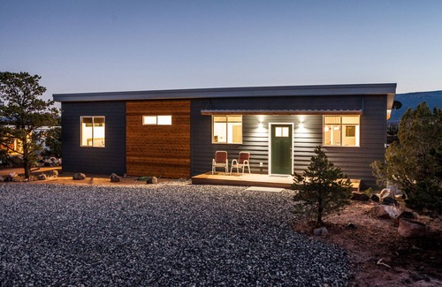our new, modern home with an open layout you and your guests will love, is decorated simply yet of high quality The large windows and sliding glass doors allow you to experience every beautiful sunrise and sunset, starry night, and scenery without ever stepping outside. The large back patio is designed for your comfort. A place to relax, entertain or just enjoy the magnificent Utah Red Rock scenery and Boulder Mountain. Our guests love the balmy breezes, silence, stillness and privacy that surround this quaint location. Also, check out our Two Bedroom home at VRBO.com/564942.