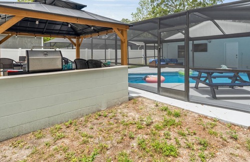 welcome to shells of paradise! this cozy 3 bed, 2 bath, heated saltwater pool home in n Tampa is the relaxing retreat that you have been looking for. Relax by the pool or grill up some dinner in the covered outdoor kitchen area in the fully fenced backyard with your favorite people. this home is in the middle of everything that you need to see and do in tampa, & the perfect place to come back to after a day filled with adventures!