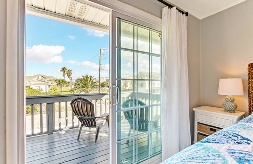 both bedrooms are on the upstairs level In the master, guests will enjoy a new king mattress and flat screen TV. Private balcony access can also be reached from the master bedroom where guests can enjoy the sound of waves crashing just across the street.