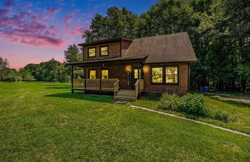 Relax at our cozy 9 acre cabin, The Tall Pine Haven! Just 25 minutes from the city. Tucked away in a serene forest, it offers a charming wooden exterior and a warm interior with modern amenities. Inside, you’ll find a fully equipped kitchen and comfortable bedrooms. Whether you're after tranquility or wish to explore local dining, shopping, and attractions, this retreat combines natural beauty with easy access, making it perfect for a memorable and rejuvenating escape. book your stay today!