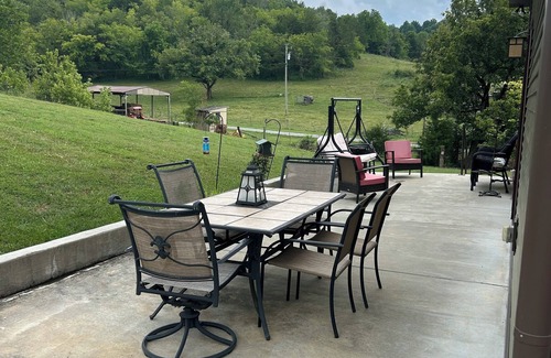 Come home and enjoy relaxing at this beautiful custom bungalow nestled in the hills of Beechgrove, Tn. It's spacious floor plan, gourmet kitchen, and spectacular view from it's porches offers a unique quiet place to rest and unwind. Minutes from I-24, yet well secluded. Room to walk your dog. With an option to kickout your horses for the night too. Also possibly available home cooked meals or picnic baskets. For larger groups and travelers we now offer Papaw's Place on the same farm..